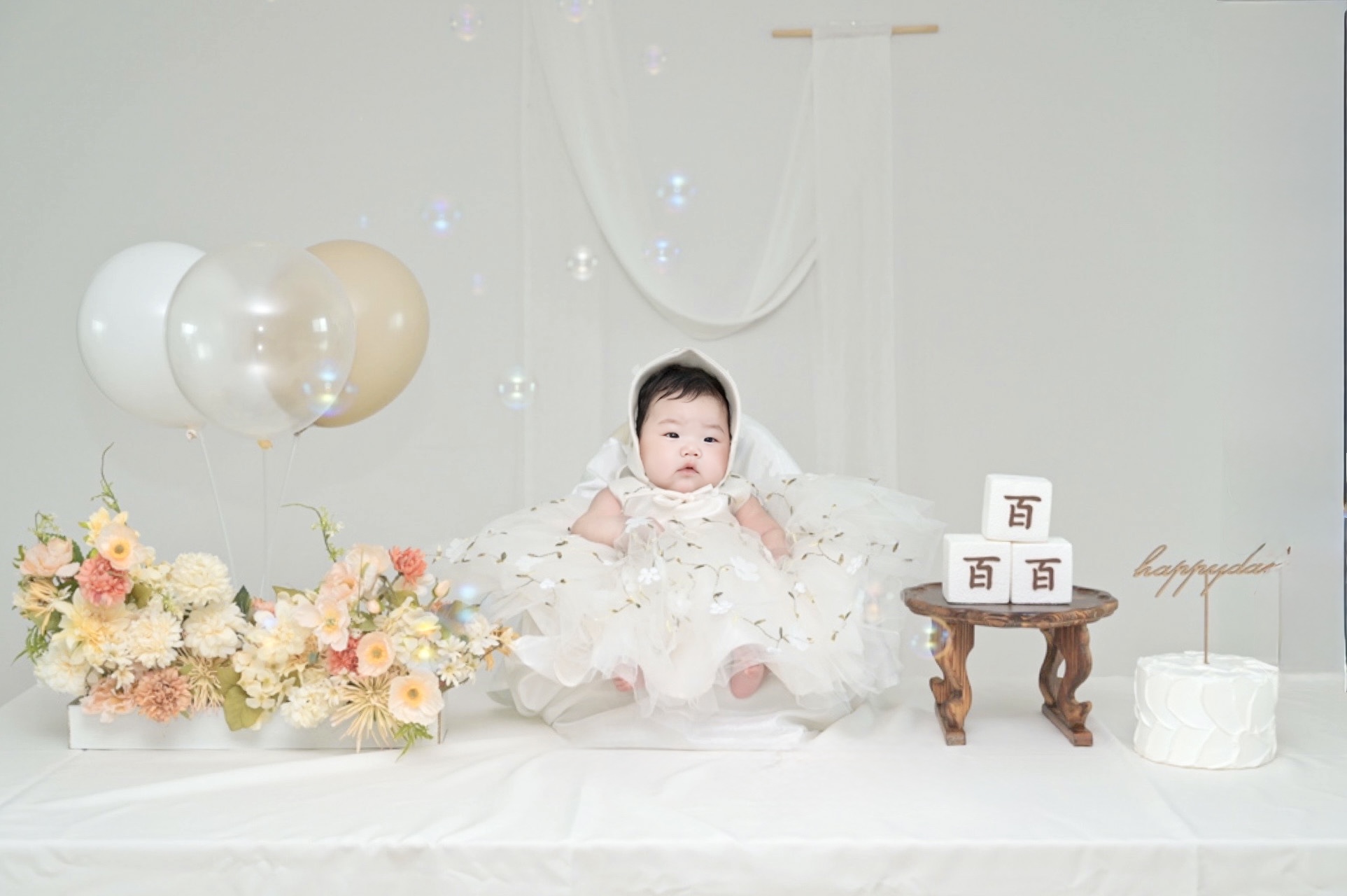 대여한 백일상을 세팅해놓으면 사진사분이 직접 집으로 오셔서 촬영을 후딱 마쳐주세요~