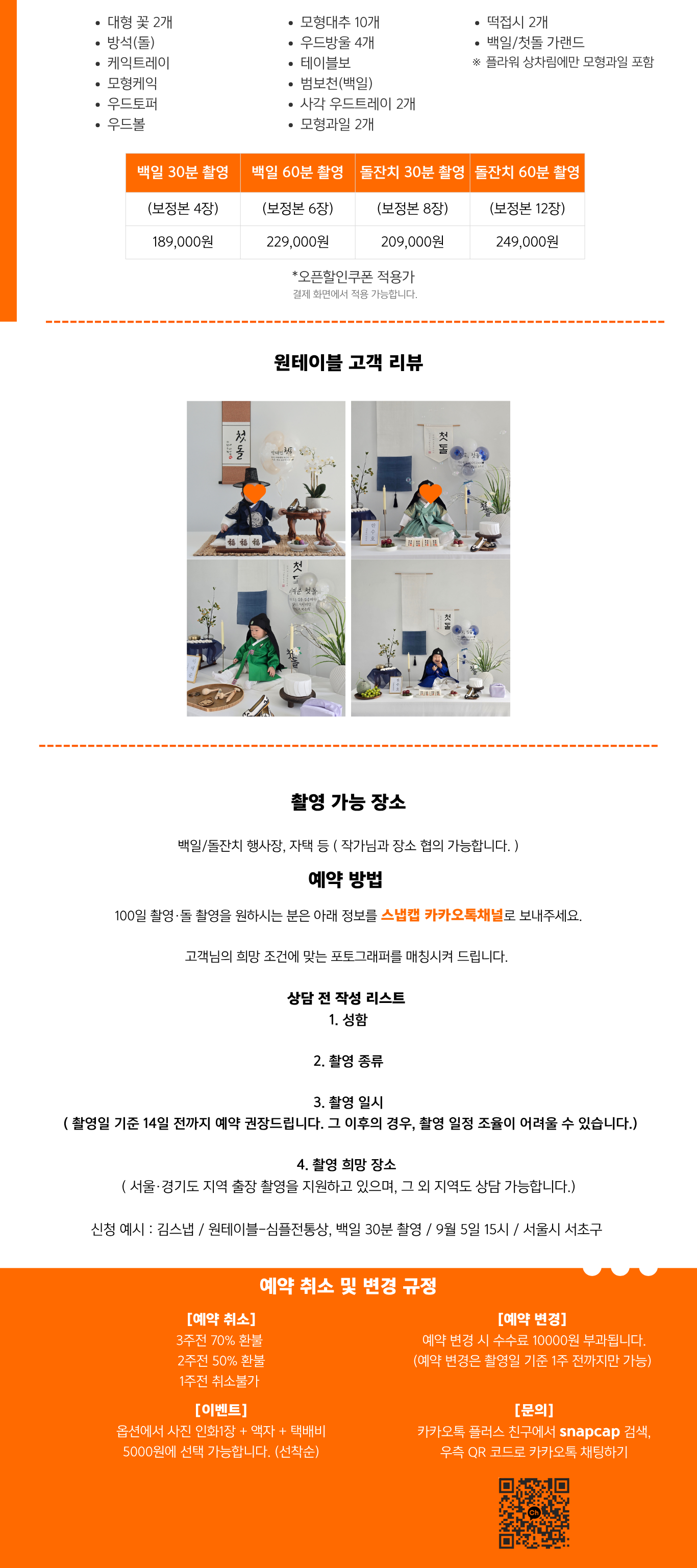 [백일상/돌상 대여 + 촬영세트] 예약 안내